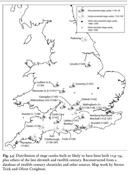 We haven’t yet run the numbers (or found good enough data) to compare the ratio of sieges to pitched battles during the Anarchy. But it is clear that former predominated. We have done this analysis for the 1st Barons’ War, however and the numbers are stark: 90% of engagements were either categorized as sieges or castle events.